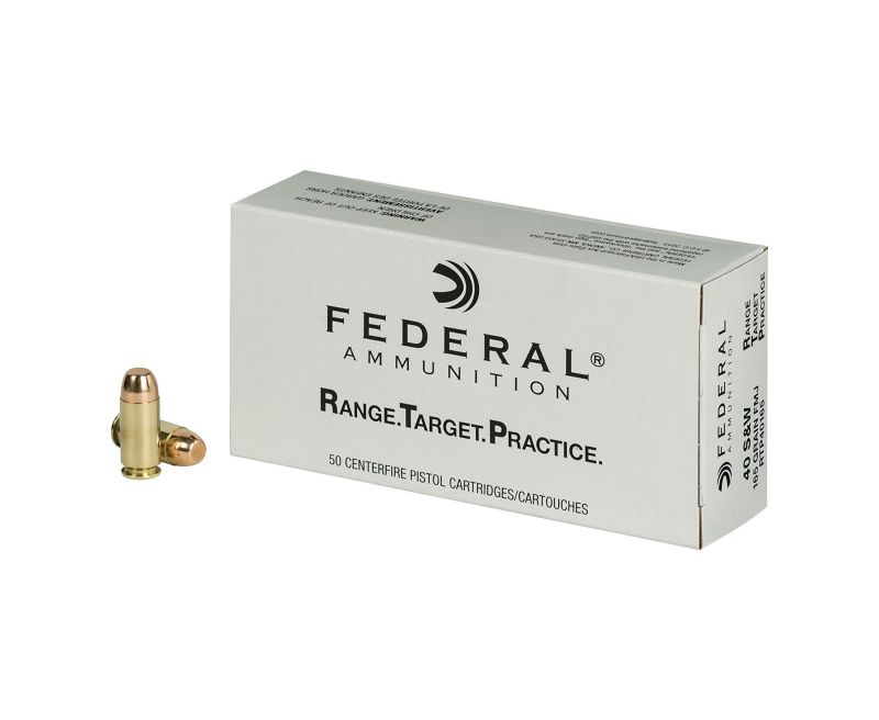 The Range Target Practice load features a full metal jacket bullet with a brass case. This 40 S&W model comes packaged 50 rounds per box, 20 boxes per case.